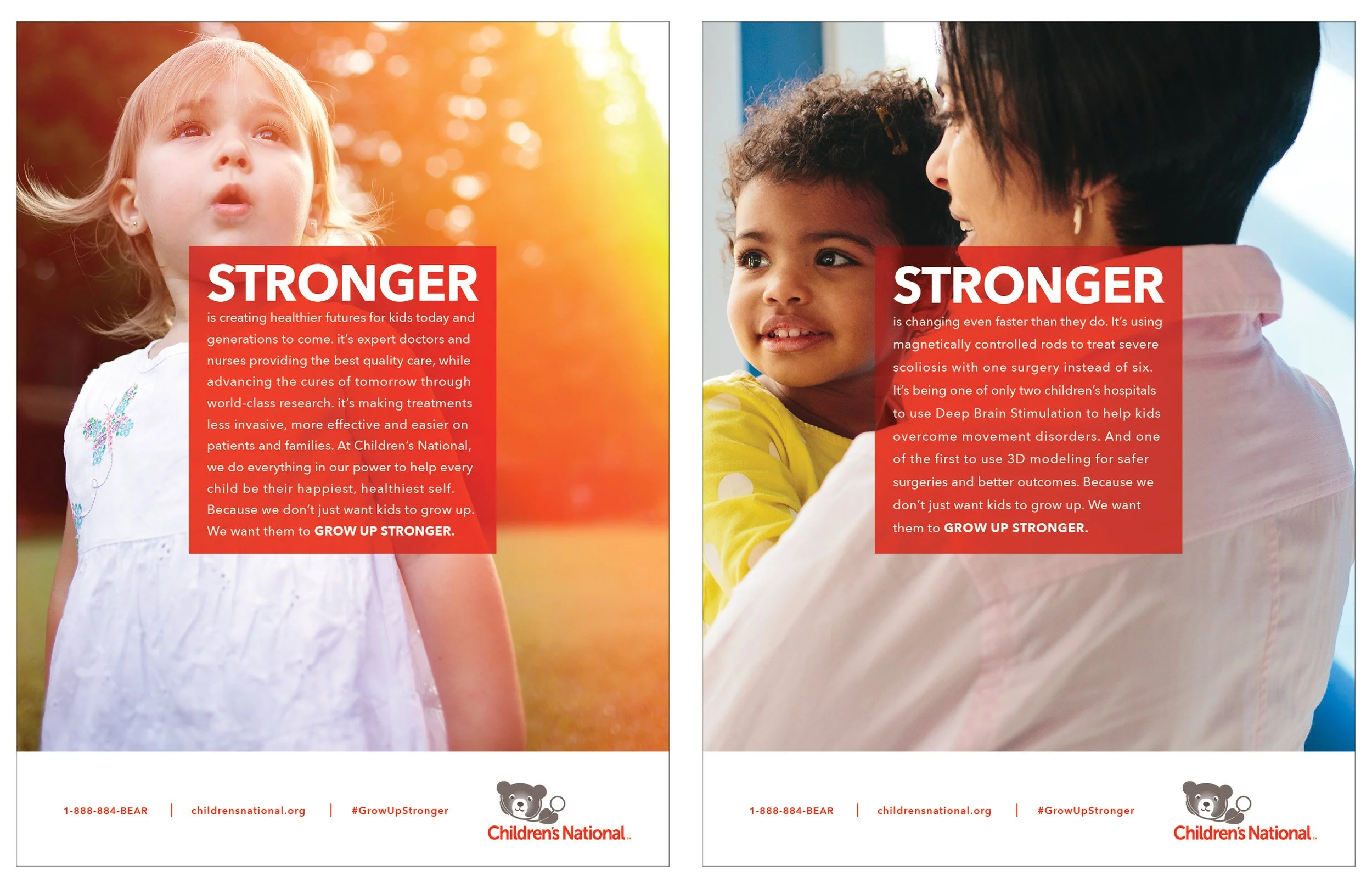 We chose a different path. To win the business, we set out to capture the shared, almost defiant spirit of the doctors, nurses, parents, and patients at Children’s National. Grow Up Stronger wasn’t designed as a campaign. It was built as a belief system, one that ultimately became the brand’s enduring identity and still stands today as its tagline.
