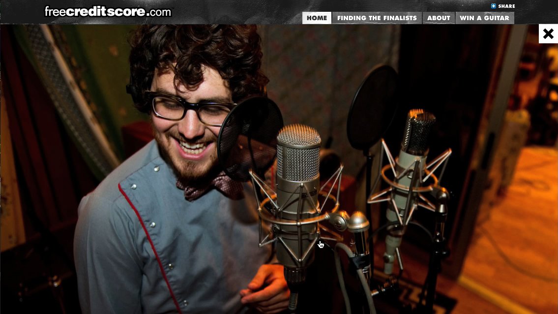 Site #2: From more than a thousand musicians, four bands rose to the finals. Each shot national spots, rallying fans to FreeCreditScore.com to cast their votes. The bands mobilized their followings across Facebook, YouTube, and blogs using a custom band-search widget, while taking the campaign to the streets as local news outlets picked up the story. Millions of page views later, America had its winner.